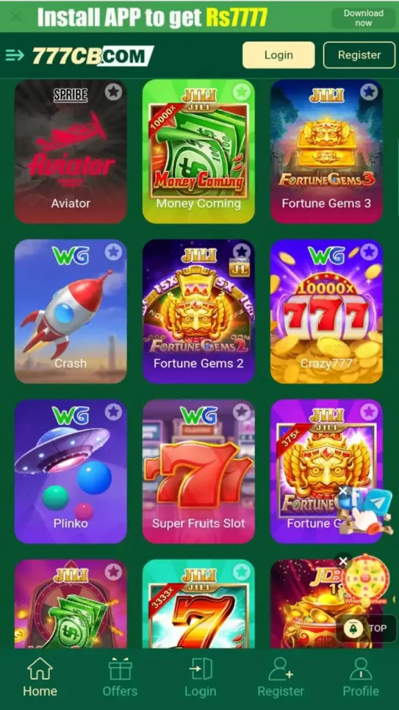 777CB Game is an online earning and entertainment app that mixes casino style games with daily rewards and referral bonuses. It is designed for users who enjoy games of luck, quick matches, and real-money challenges. The app has a mix of classic casino games, slots, teen patti, color prediction, and other small challenges where you can earn points and convert them into cash.